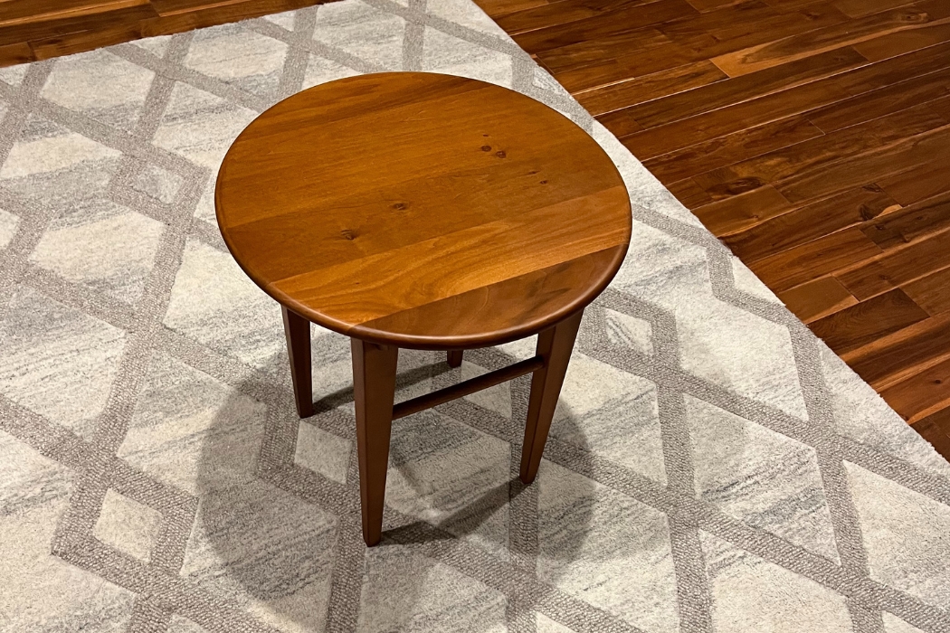 Subtle mid-century modern details shine through the slightly tapered legs, adding timeless style and visual lightness. Crafted from solid American Poplar wood, it features a rich berry brown finish that brings warmth and depth. Measuring 19.7″ Diameter x 20.1″ H, this table balances form and function, making it ideal for everyday living.